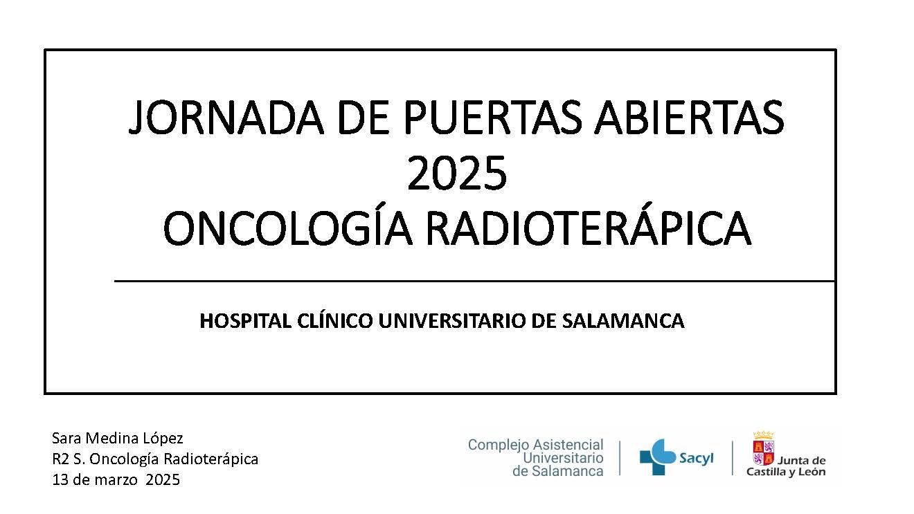 Desarrolla su actividad en el área docente (Estudiantes de Medicina, Médicos residentes, Técnicos superiores en Radioterapia y Enfermeras), asistencial y en investigación (grupo adscrito al Instituto de Investigación Biomédica de Salamanca, IBSAL, CANC-22 Oncología Radioterápica). Actualmente tiene una capacidad docente acreditada de 1 residente por año, con 4 Médicos residentes en formación.